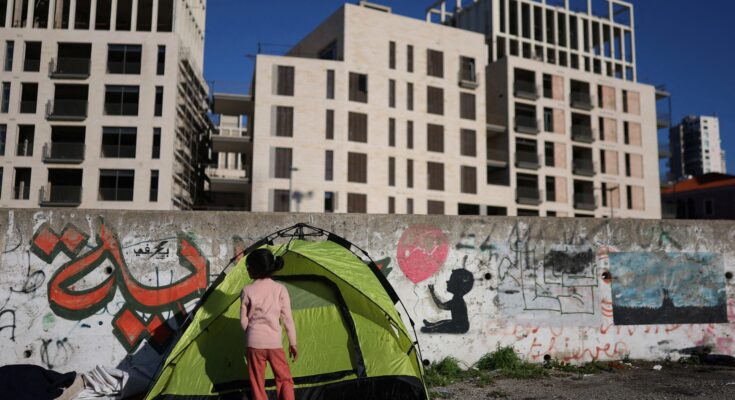 Pessoas desabrigadas em Beirute após a escalada de tensões entre o Hezbollah e Israel, em meio ao conflito entre Estados Unidos e Israel contra o Irã.