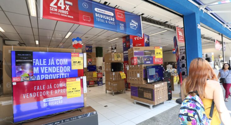 Movimentação de clientes em Loja das Casas Bahia, na zona sul da capital paulista, nesta segunda-feira, 29 de abril de 2024.
