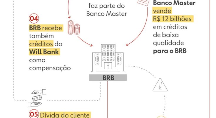 São clientes que nunca tiveram conta no BRB. O vínculo se deu porque o banco vinha comprando carteiras de crédito do Master desde 2024 e chegou a anunciar um acordo para comprar o banco em março de 2025, em uma operação estimada em R$ 2 bilhões. A transação, no entanto, foi vetada pelo Banco Central em setembro.