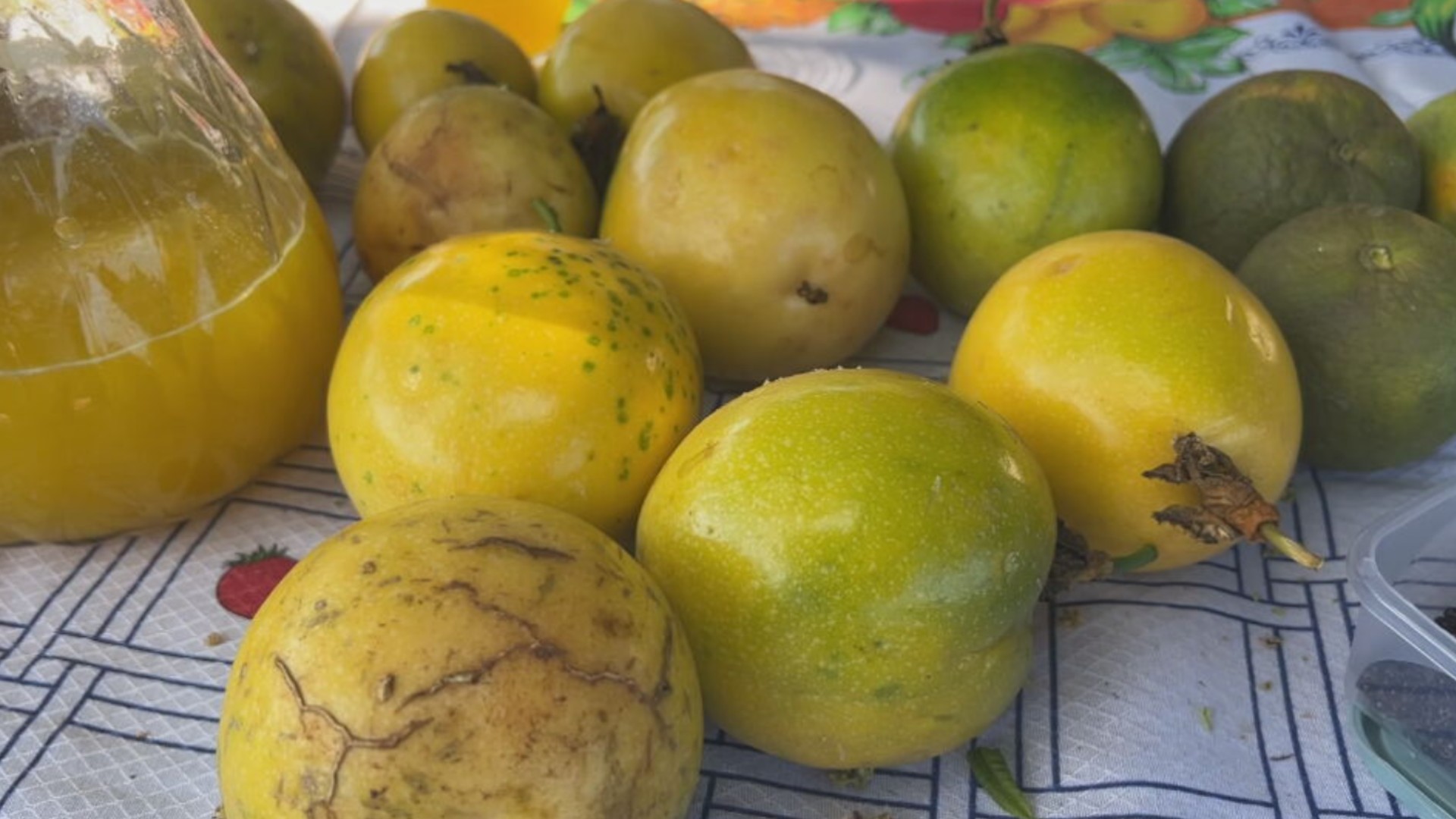 Rosemeire explica que, atualmente, está colhendo laranja, mamão, maracujá e limão, frutos de época. Ela também lembra que algumas espécies, se forem regadas corretamente, mantêm uma produção mais longa que outras, que só produzem quando estão em temporada.