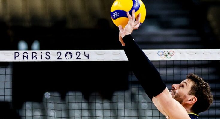 Jogador de volêi está com a bola