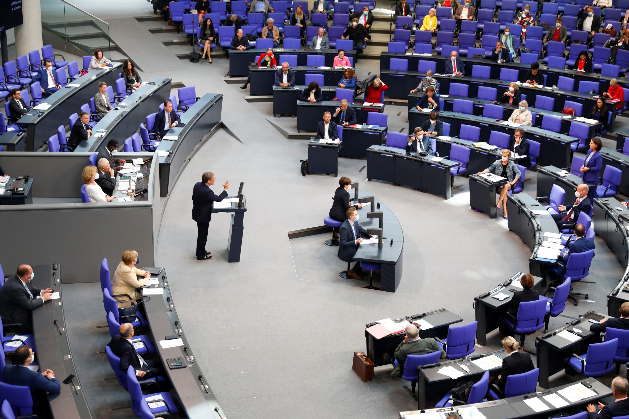 O projeto de lei inclui um pacote de 500 bilhões de euros para infraestrutura e mudanças nas regras de empréstimos. Câmara baixa do Parlamento da Alemanha, em Berlim, em foto de 7 de setembro