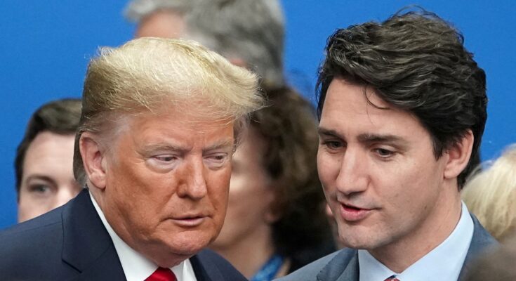 Medidas são anunciadas apenas um dia depois de as tarifas de 25% sobre todos os produtos importados de ambos os países começarem a valer. Donald Trump e Justin Trudeau durante encontro de líderes da Otan em Londres, em 4 de dezembro de 2019