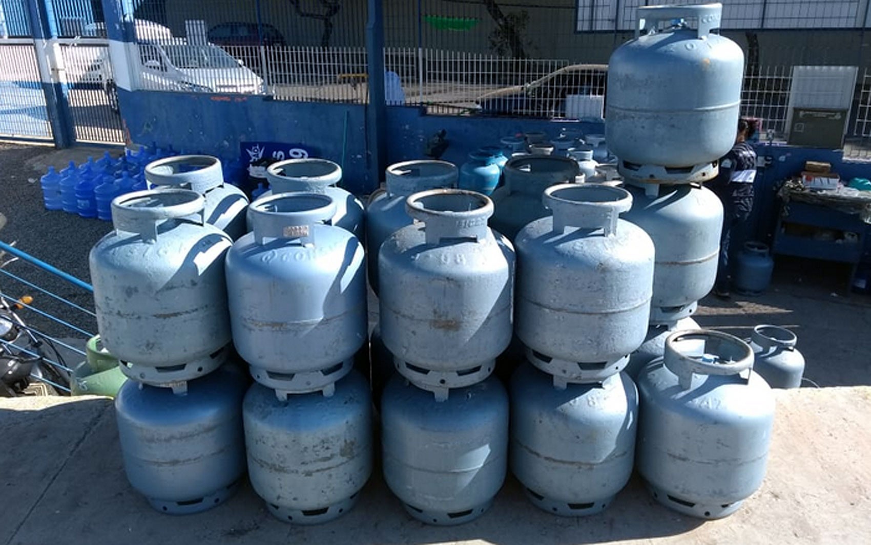 Botijões de gás em posto de revenda no Jardim São Gabriel, em Campinas