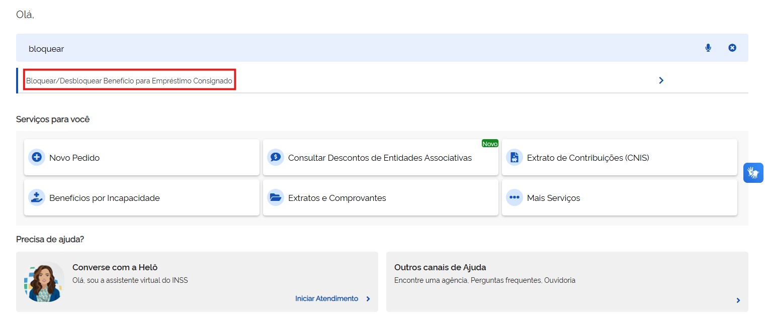 Acesse o serviço “bloquear/desbloquear benefício para empréstimo consignado” do Meu INSS