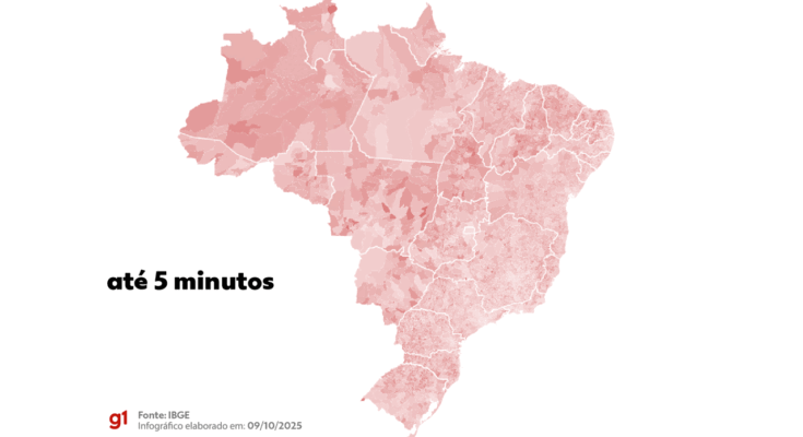 🔎 O IBGE considera o tempo gasto entre o domicílio e o local do trabalho principal, desconsiderando paradas intermediárias, como levar filhos à escola ou fazer compras. Nos casos em que o trabalhador sai de outro local — como a faculdade — o tempo considerado é o do retorno para casa. As informações se referem à semana de 25 a 31 de julho de 2022 e abrangem apenas quem se desloca pelo menos três vezes por semana até o trabalho.
