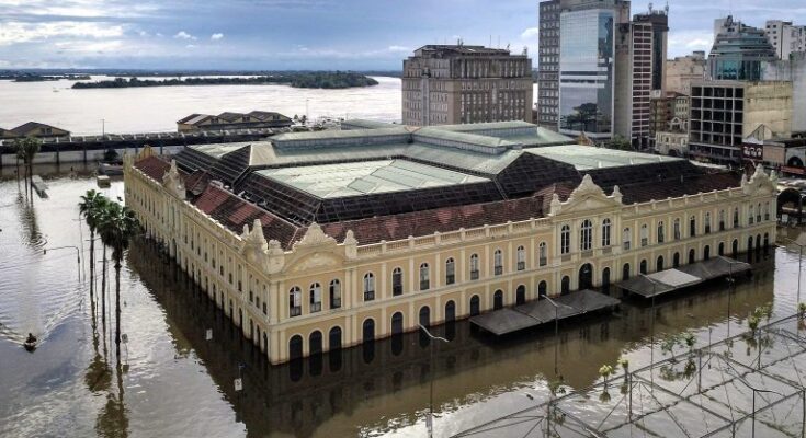 Centro histórico de Porto Alegre alagado