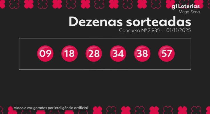O sorteio do concurso 2.935 da Mega-Sena foi realizado na noite deste sábado (1º), em São Paulo. Nenhuma aposta acertou as seis dezenas, e o prêmio para o próximo sorteio acumulou em R$ 41 milhões.