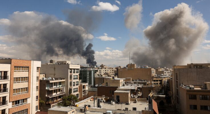 Fumaça sobe após uma explosão, depois que Israel e os Estados Unidos lançaram ataques contra o Irã, em Teerã, Irã, em 1º de março de 2026.