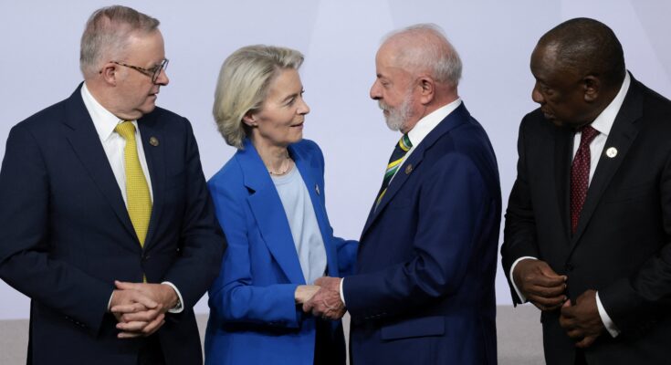 Os europeus fizeram novas exigências, como uma carta que solicitava maior comprometimento ambiental. E o bloco aprovou outras regras de comercialização, como a lei de antidesmatamento, que dificulta a venda de produtos brasileiros para a Europa, mas cuja implementação tem sido adiada.