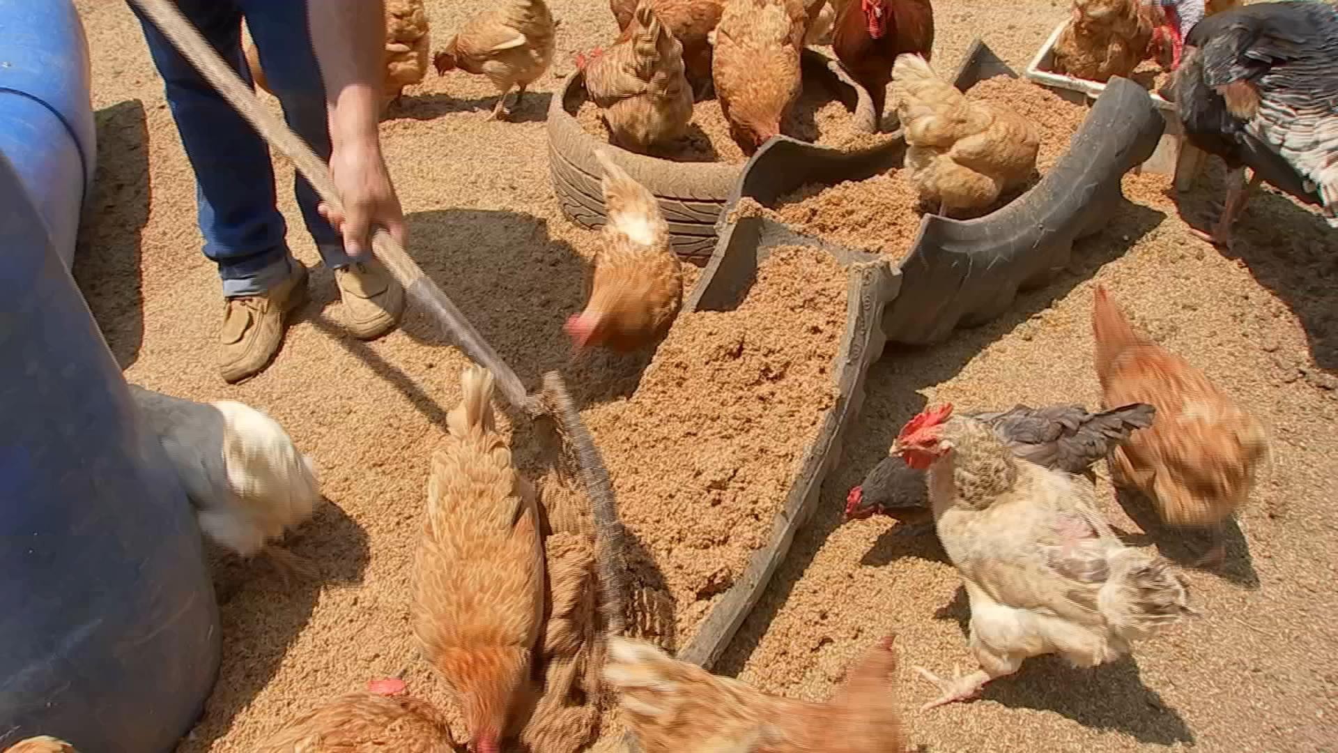 É o caso de Marcos, que pega parte do material de uma cervejaria que doa os resíduos. Ele tem mais de 130 galinhas que se alimentam do bagaço, além de carneiros, cabritos e cabras.