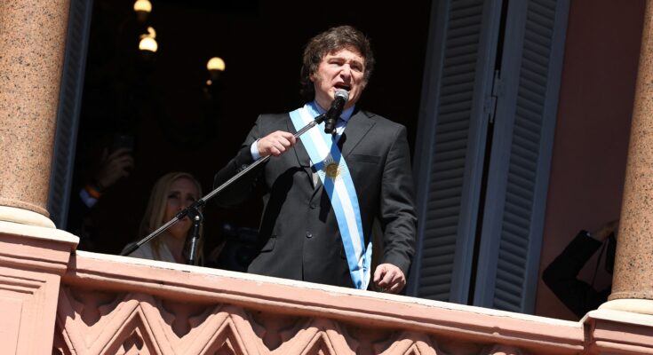 Milei discursa na Casa Rosada após tomar posse como presidente da Argentina