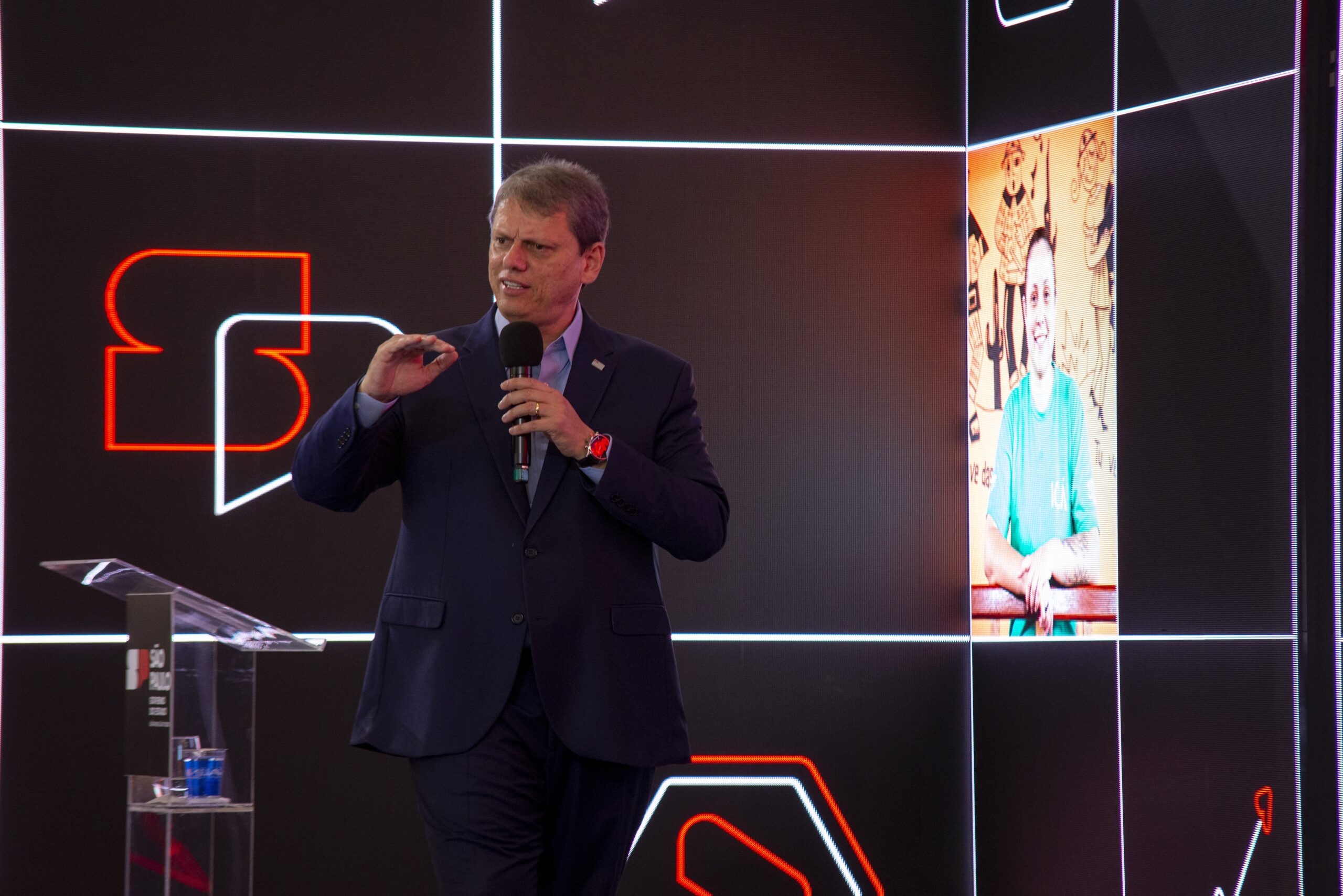 “Hoje não tem martelo. Acho que ficaram com medo”, disse o governador em uma tentativa de piada com o que ocorreu na sede da Bolsa em março do ano passado, quando ele quase quebrou o símbolo da B3 ao encerrar o leilão do Rodoanel Norte.