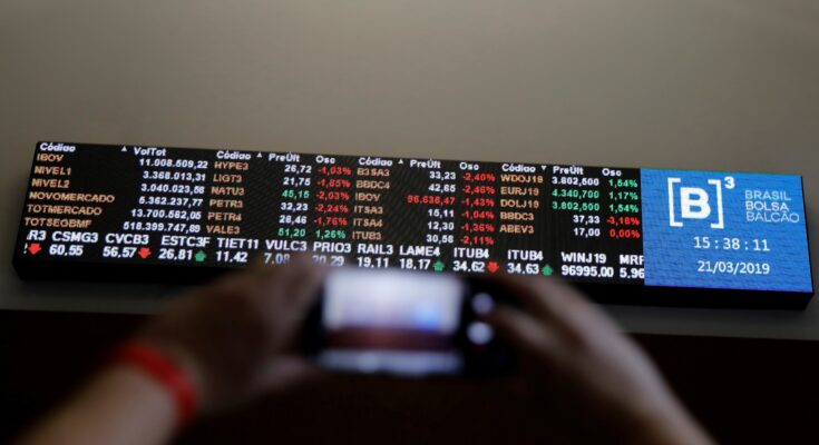 Painel na sede da B3, em São Paulo, Ibovespa, bolsa, Bovespa