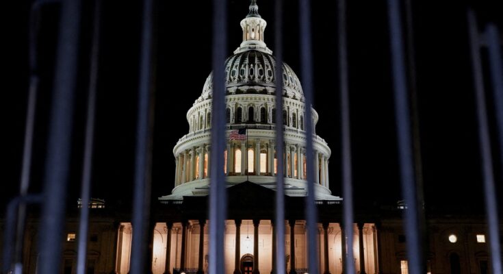 O Capitólio dos EUA, horas antes de uma paralisação parcial do governo entrar em vigor, em Washington