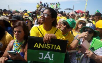Manifestante segura cartaz com pedido de ‘Anistia já’ em manifestação com Bolsonaro em Copacabana, no Rio de Janeiro REUTERS/Pilar Olivares Governistas e aliados no Congresso Nacional temem que a oposição …