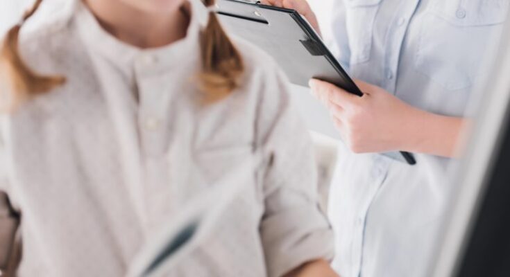 Criança é atendida por médico. A foto está cortada e não é possível ver os rostos