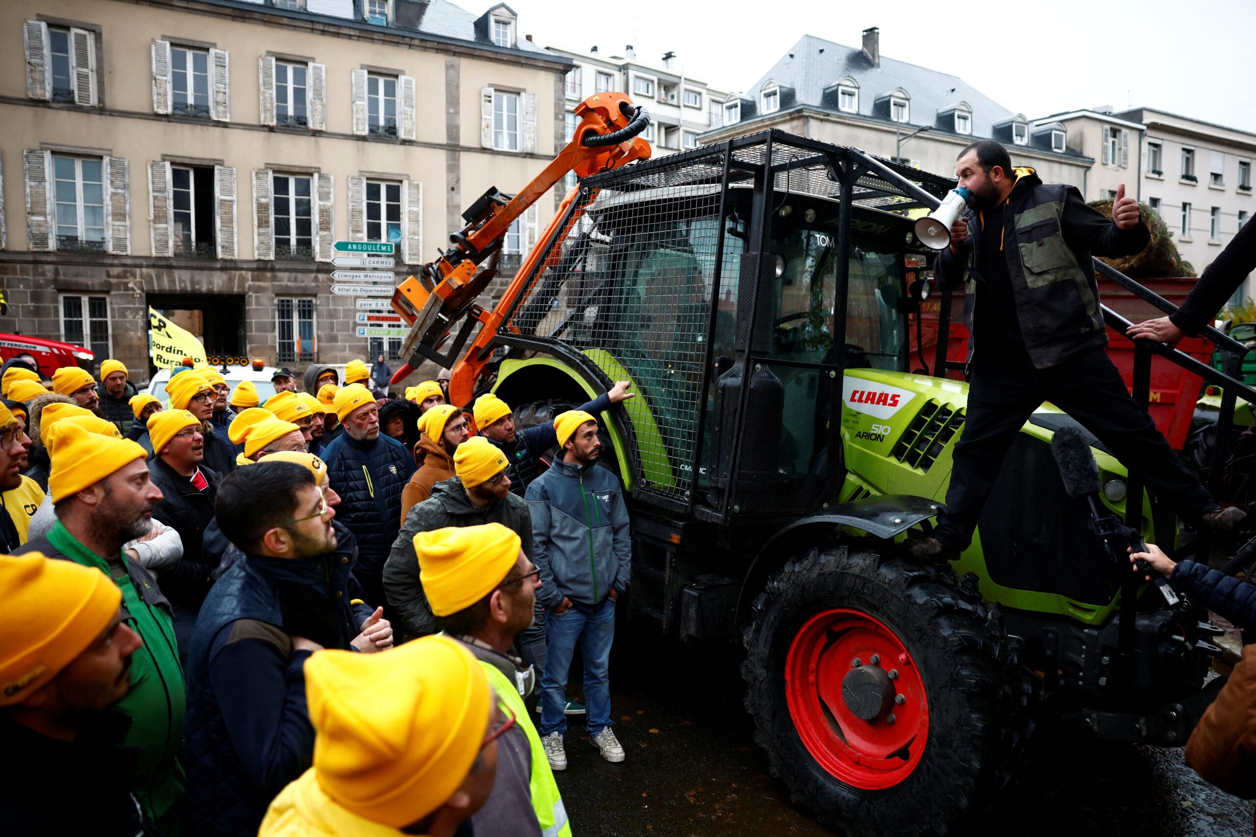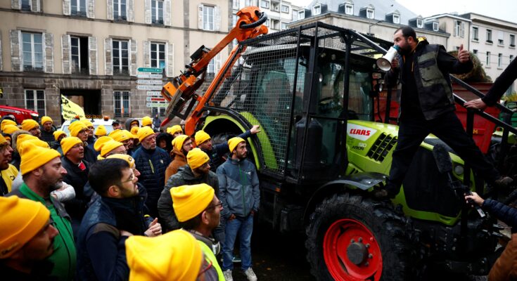Agricultores franceses em protesto contra acordo do Mercosul na cidade de Limoges, na França, em 2024