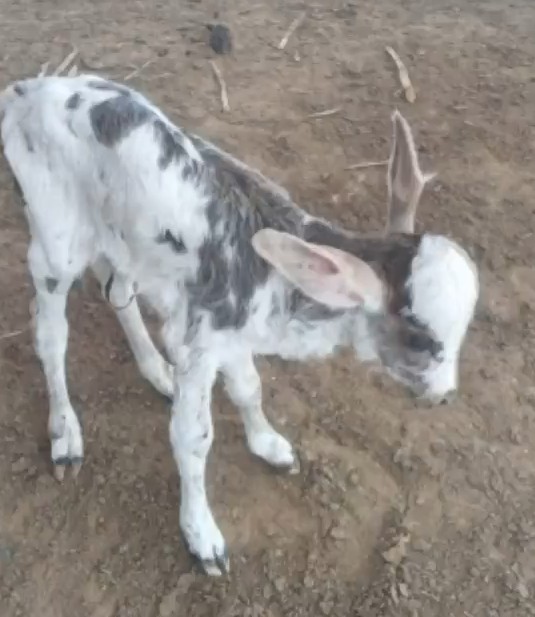 Uma bezerra recém-nascida com orelhas grandes e caídas, muito parecidas com as de um jumento, chamou atenção do produtor Edivaldo Souza em Itambé, no sudoeste da Bahia.